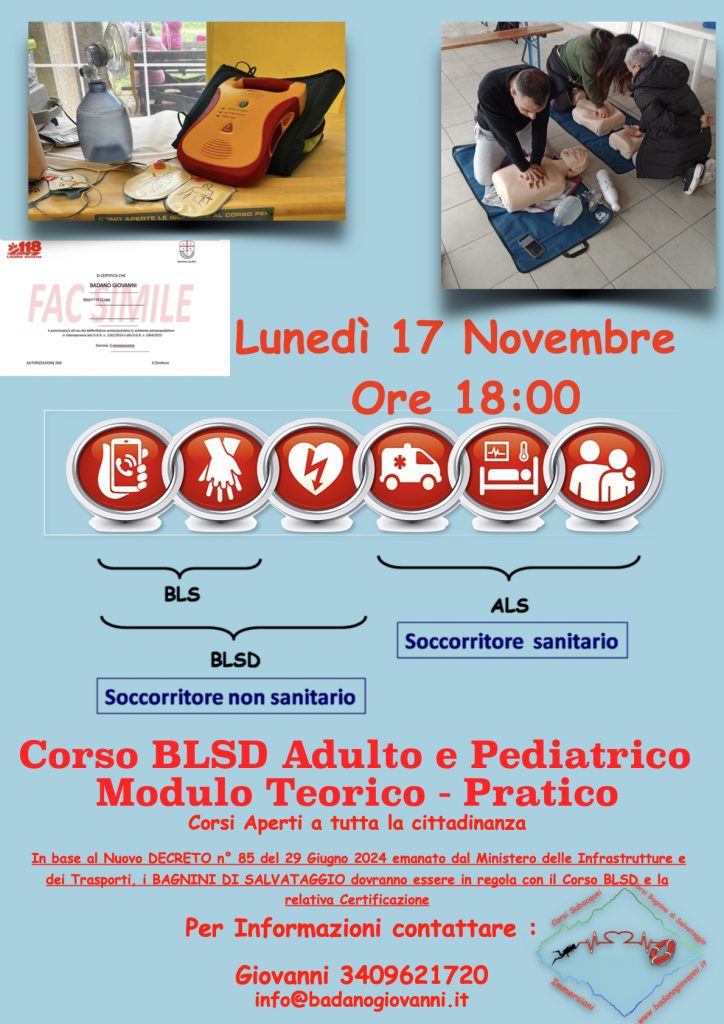 TUTTI i Bagnini di Salvataggio DEVONO essere in regola con il corso BLSD e relativa certificazione.